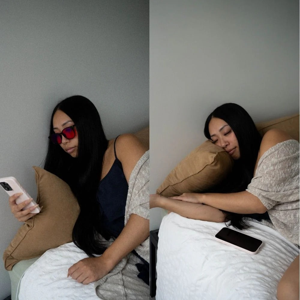 Nuestras gafas filtran la luz azul de teléfonos y pantallas, reducen el cortisol, promueven la relajación y ayudan a restaurar tu ciclo natural de sueño.